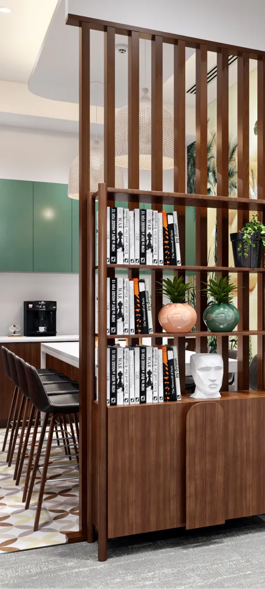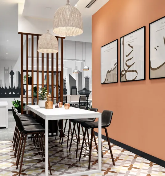 We collaborated with Shikha and Arsh Design Studio to seamlessly merge spatial parameters, functionality, and aesthetics, resulting in a beautifully practical workspace uniquely suited to Riyadh.